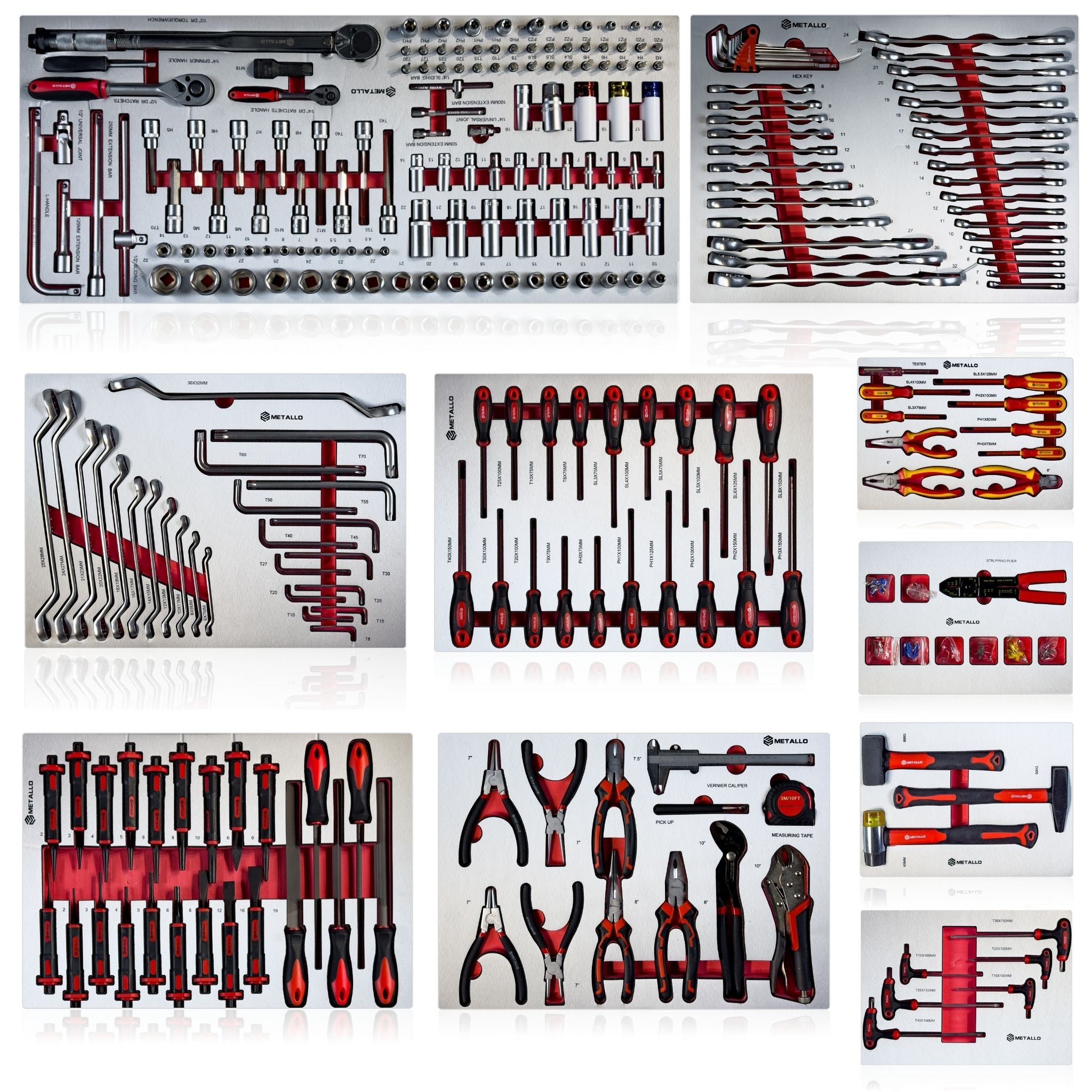 Der ToolCar Metallo ist die ideale Wahl für Werkstätten, die eine Kombination aus Organisation, Mobilität und hochwertiger Werkzeugausstattung suchen. Dieser Werkzeugwagen bietet nicht nur 13 Schubladen, sondern auch eine professionelle Werkzeugausstattung in 10 der Schubladen, während 3 zusätzliche Schubladen für individuellen Stauraum zur Verfügung stehen.
