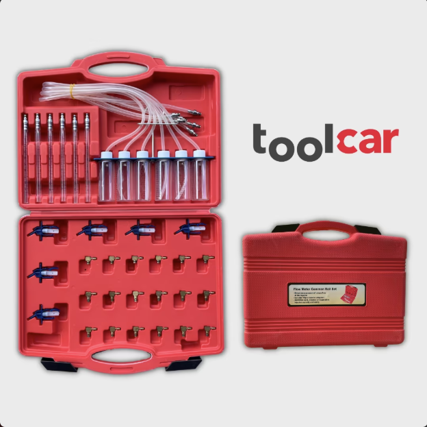 Dieses Diagnose-Kit ermöglicht die gleichzeitige Messung der Rücklaufmenge von bis zu 6 Injektoren. Durch den direkten Vergleich der Kraftstoffmengen in den Messbechern oder Kolben können Verschleißerscheinungen und Fehlfunktionen an den Einspritzdüsen sofort identifiziert werden, ohne den Motor komplett zerlegen zu müssen.